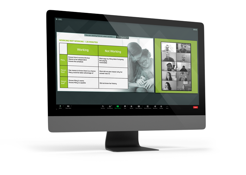• Assisting Person-Centered Thinking Training graduates to further develop their PCT skills
