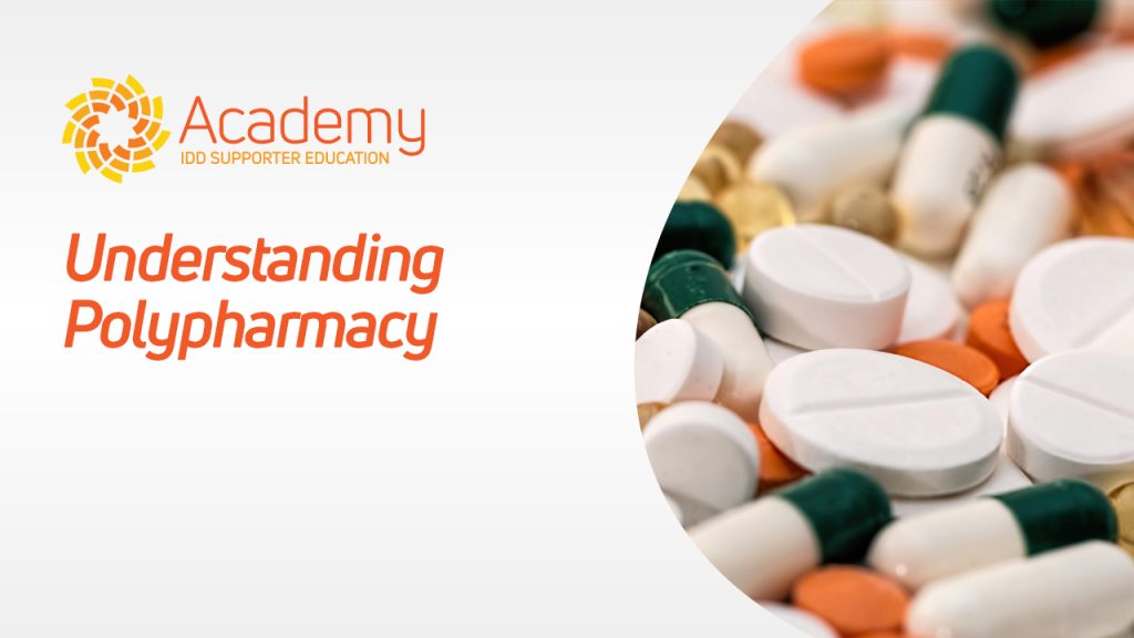 Learners are introduced to the concept of polypharmacy, including common reasons it occurs in IDD services and how multiple medications can impact health, behavior, and quality of life.